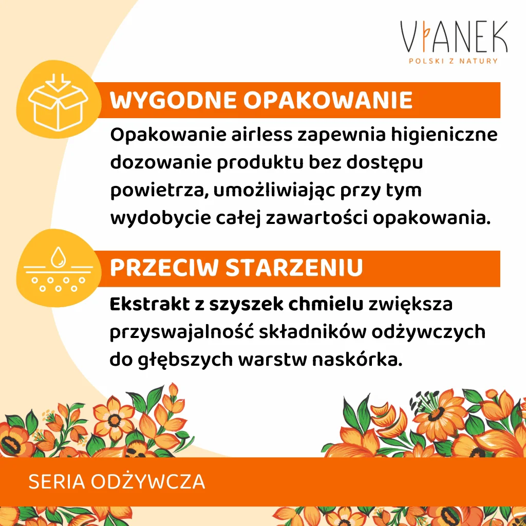 Zawarty w kremie ekstrakt z szyszek chmielu pełni ważną rolę w zwiększaniu przyswajalności składników odżywczych przez skórę. Dzięki niemu, cenne substancje zawarte w kremie są w stanie dotrzeć do głębszych warstw naskórka, co sprawia, że działanie produktu jest jeszcze bardziej skuteczne. Ta zaawansowana formuła sprawia, że skóra jest nawilżona, odżywiona i zregenerowana, a jej wygląd zdecydowanie poprawiony.