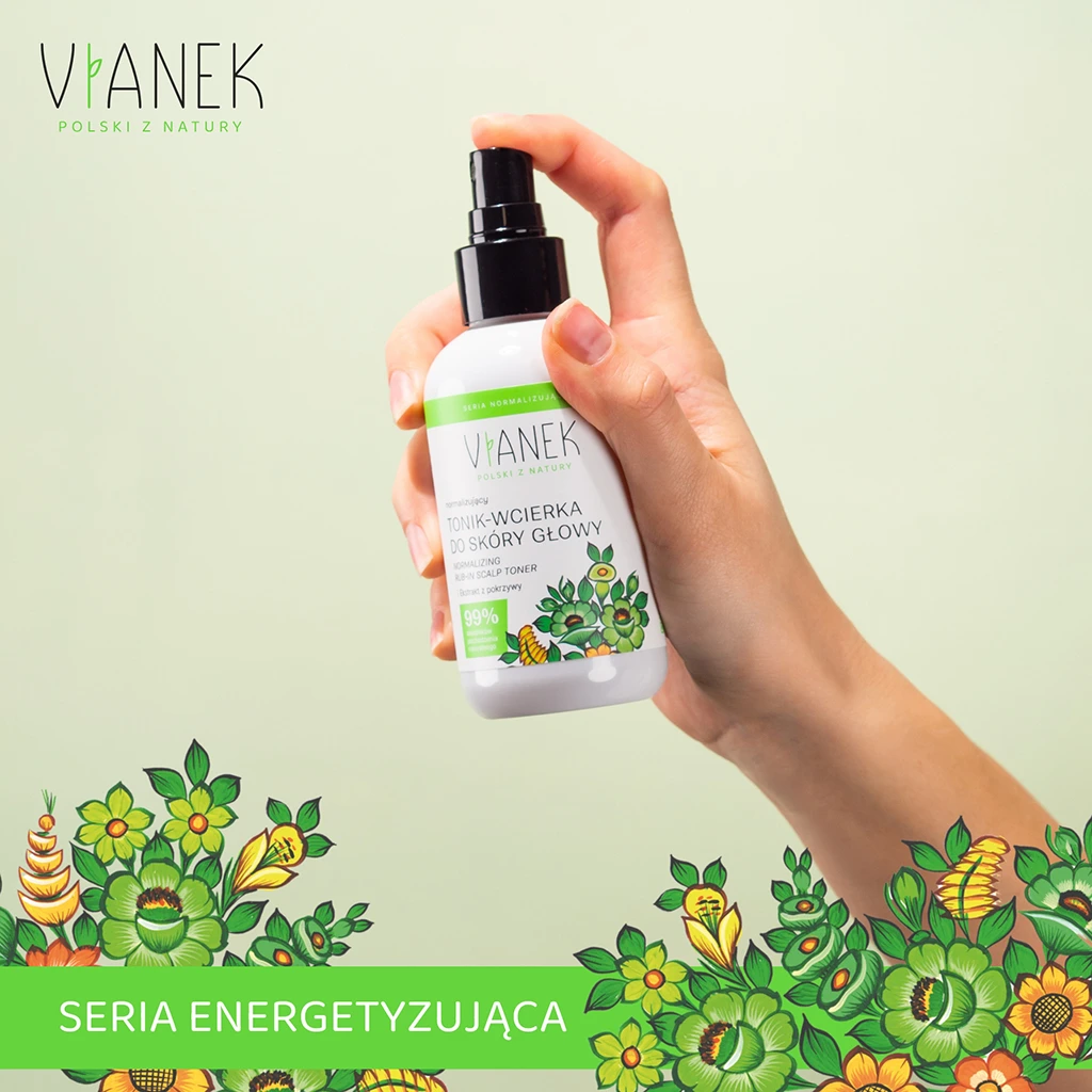 Normalizujący tonik-wcierka do skóry głowy to jeden z najpopularniejszych produktów marki Vianek, dedykowany dla kobiet, jak i mężczyzn. Naturalne składnik zawarte w produkcie stymulują porost włosów, a także ograniczając ich wypadanie i przetłuszczanie. Dodatkowo regularne stosowanie przywraca równowagę skóry naszej głowy.