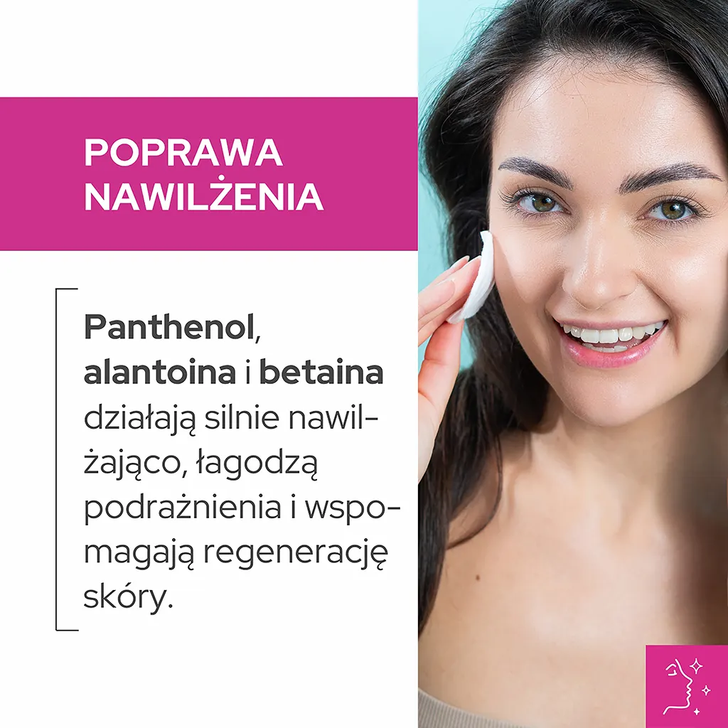 Niacynamid to składnik, który oprócz swoich właściwości antyoksydacyjnych, wyrównuje koloryt skóry i zmniejsza widoczność przebarwień. Regularne stosowanie toniku sprawia, że skóra staje się bardziej promienna, a wszelkie zaczerwienienia i plamy potrądzikowe są mniej widoczne. Panthenol, alantoina i betaina zapewniają intensywne nawilżenie i wsparcie w procesach regeneracyjnych skóry. Tonik łagodzi podrażnienia i przywraca skórze jej naturalną miękkość i elastyczność.