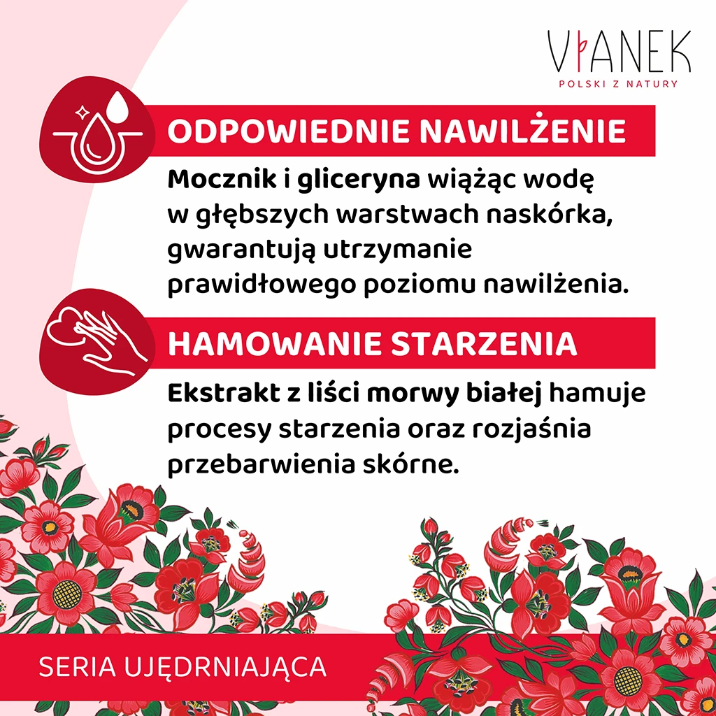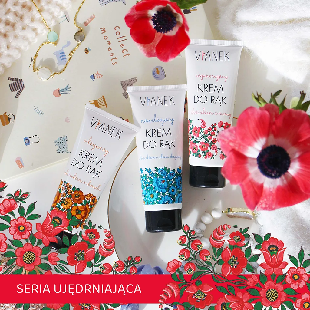 Skoncentrowany na potrzebach dłoni, które wymagają wyjątkowej troski. Krem VIANEK został stworzony z myślą o suchej, zniszczonej i potrzebującej odżywienia skórze dłoni. Dzięki swojej zaawansowanej formule, krem przywraca Twoim dłoniom miękkość, gładkość i zdrowy wygląd.