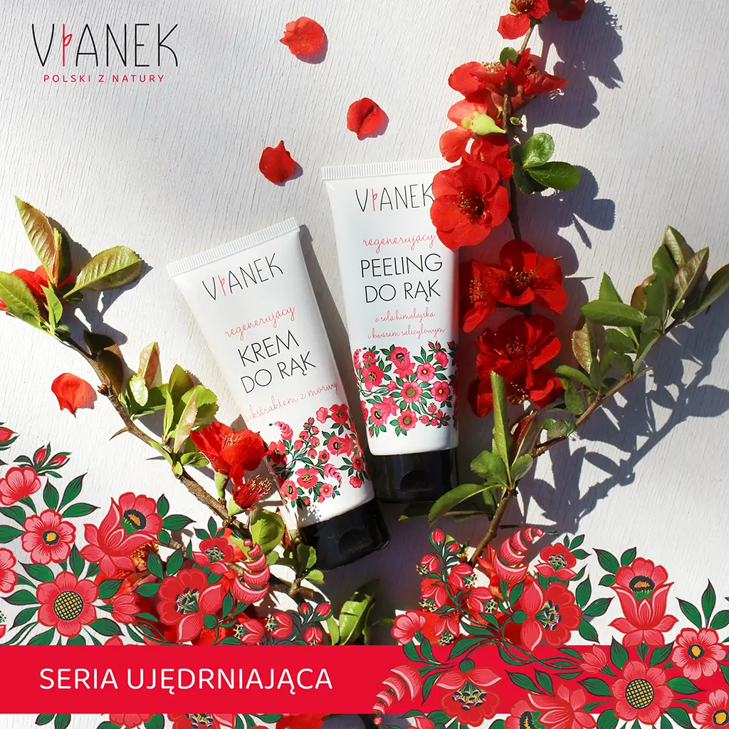 Aby wzmocnić efekty pielęgnacyjne, zastosuj krem po uprzednim użyciu VIANEK regenerującego peelingu do rąk. Bogata formuła kremu w połączeniu z mechanicznym peelingiem to kompleksowy zabieg pielęgnacyjny.