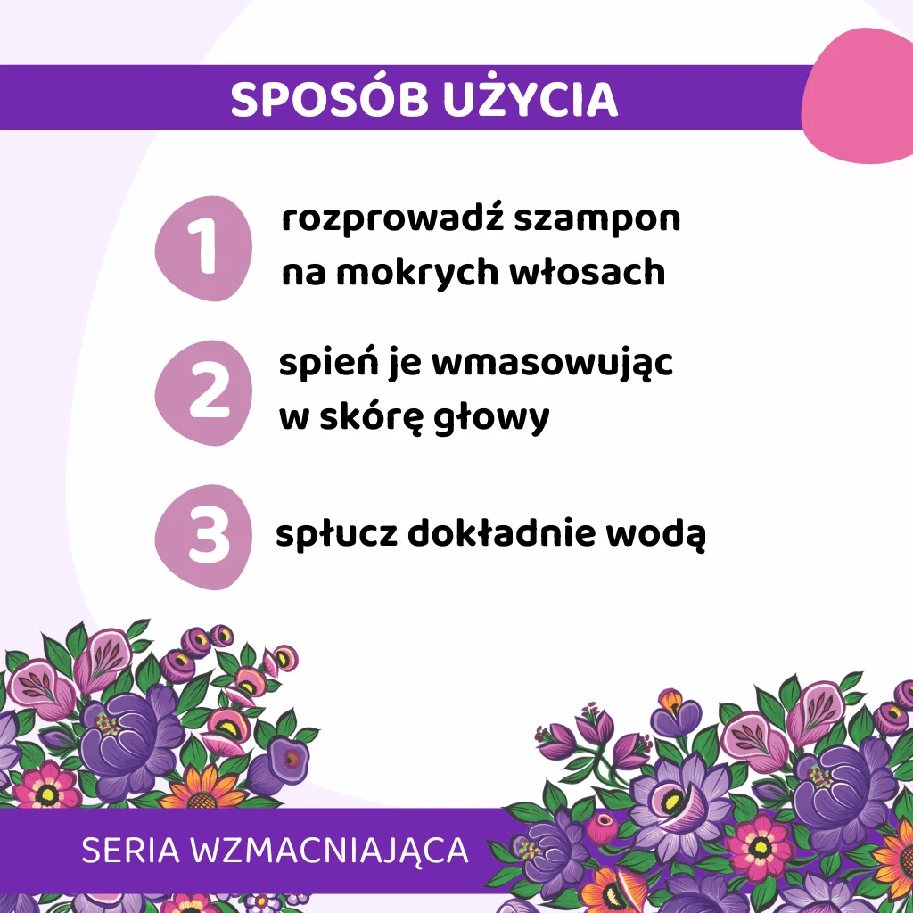| Sposób użycia | Rozprowadź szampon na mokrych włosach i spień wmasowując w skórę głowy. Dokładnie spłucz. W razie potrzeby można czynność powtórzyć. |