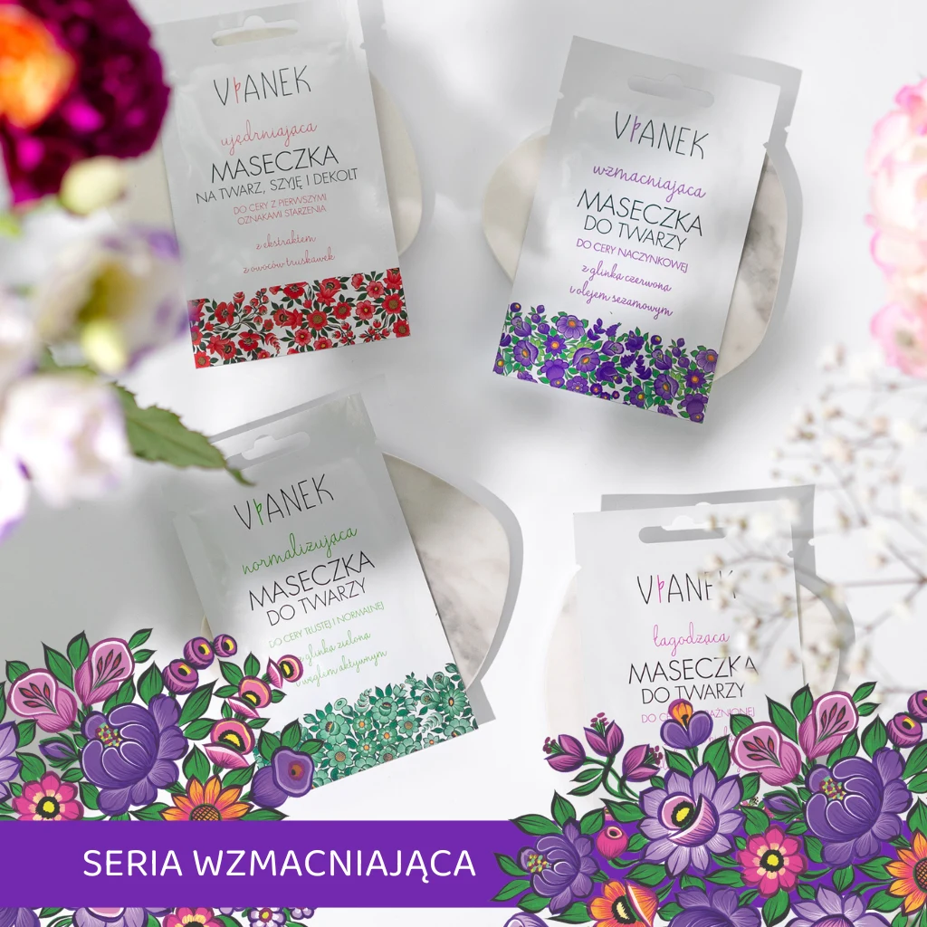 Zestaw zaczyna się od maseczek Vianek o działaniu normalizującym i łagodzącym, które pomagają przywrócić równowagę skóry mieszanej i skłonnej do nierówności. Naturalne glinki zawarte w tych formułach delikatnie absorbują nadmiar sebum, a jednocześnie dostarczają skórze minerałów, które wspierają jej naturalną barierę ochronną. Regularne stosowanie może sprawić, że skóra stanie się bardziej jednolita w wyglądzie i mniej reaktywna na czynniki zewnętrzne.