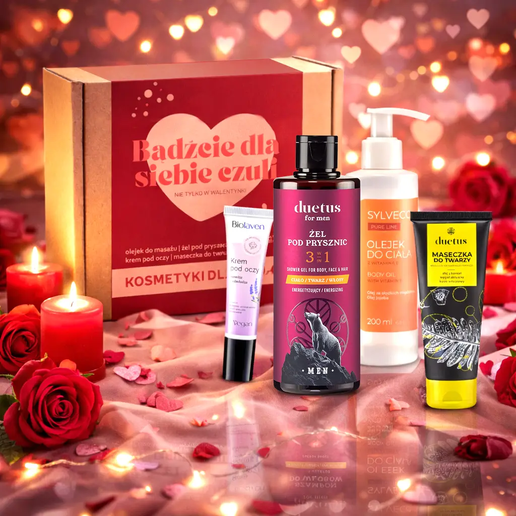 Zestaw walentynkowy BĄDŹCIE DLA SIEBIE CZULI, w którym znajdziesz kosmetyki dla dwojga, uniwersalne i doskonałe zarówno dla Pani, jak i Pana.