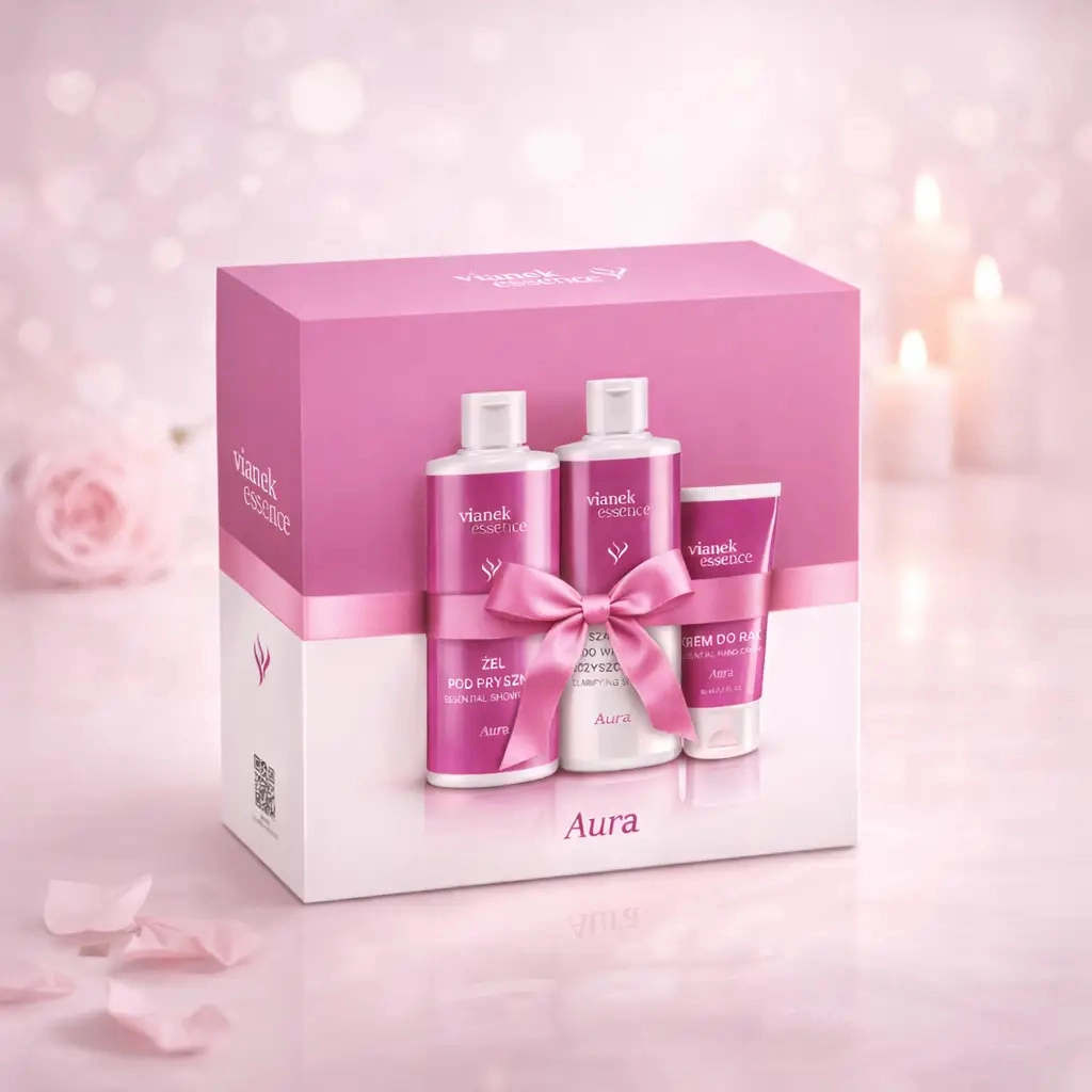 VIANEK ESSENCE Aura to zestaw, który łatwo polecić: wygląda spójnie, pachnie elegancko i daje realny efekt „ogarniętej” pielęgnacji w 3 krokach. Świetny jako prezent (praktyczny, uniwersalny), ale też jako szybka wymiana kosmetyków na takie, które dbają o komfort skóry, świeżość włosów i kondycję dłoni każdego dnia.