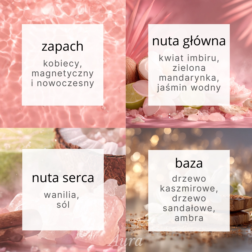 Żel pod prysznic Aura to więcej niż „mycie” – to codzienny krok, który zostawia skórę miękką i komfortową dzięki składnikom nawilżającym i łagodzącym (m.in. gliceryna, pantenol, alantoina). A do tego ten klimat zapachowy: mandarynka i kwiat imbiru przełamane ciepłem wanilii i drzewa sandałowego – idealny balans świeżości i otulenia.