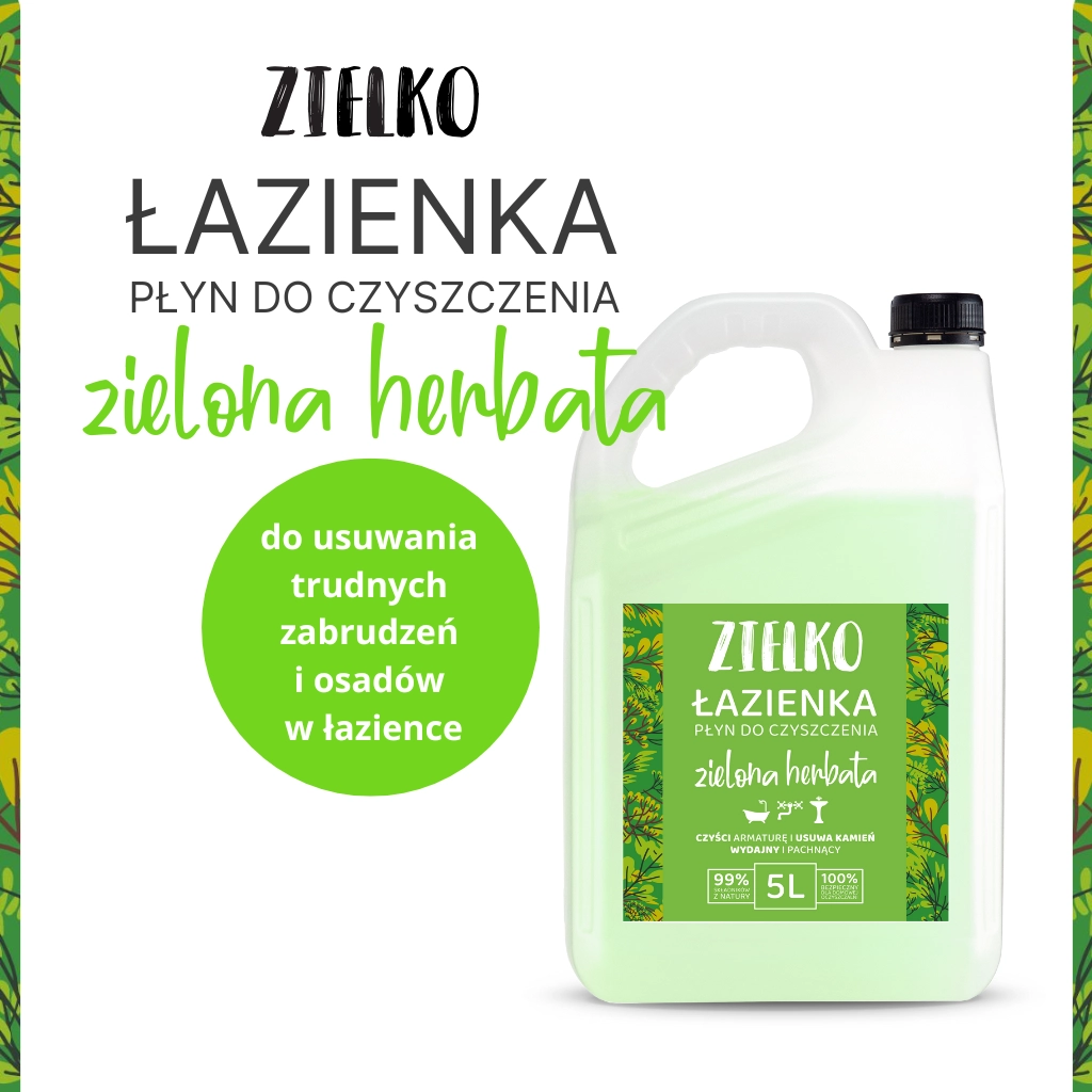 Pachnący zieloną herbatą płyn do ZIELKO skutecznie czyści i odświeża łazienkę, wypełniając ją niezwykle przyjemnym aromatem. Błyskawicznie radzi sobie z kamieniem i wszelkimi osadami na armaturze oraz ceramice, pozostawiając lśniące powierzchnie bez smug i zacieków. Jego specjalnie opracowana formuła zapobiega osadzaniu się kurzu, co umożliwia łatwiejsze utrzymanie czystości na dłużej. Bezpieczny i skuteczny skład, zawierający 5-<15% amfoteryczne związki powierzchniowo czynne oraz unikalną kompozycję zapachową, zapewnia nie tylko nieskazitelną czystość, ale i przyjemny, odświeżający aromat zielonej herbaty. Czyszczenie łazienki z ekologicznym płynem ZIELKO jest nie tylko przyjemne i skuteczne, ale również przyjazne dla naszej planety.