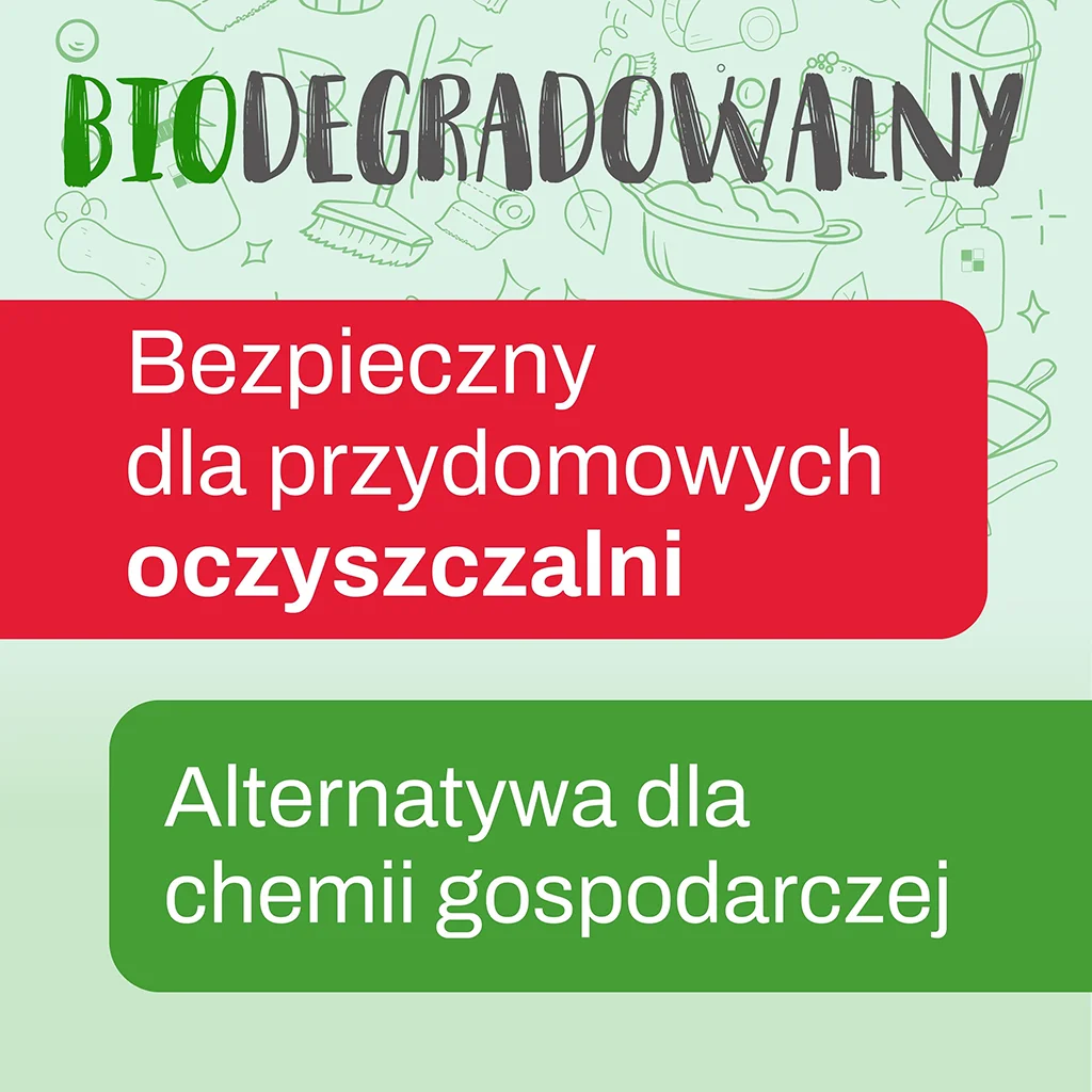 Jesteśmy dumni, że nasz płyn do łazienki ma biodegradowalną formułę. Dzięki temu możesz dbać o środowisko, nie rezygnując z doskonałych rezultatów czyszczenia. Ponadto, płyn ZIELKO jest całkowicie bezpieczny dla flory bakteryjnej w przydomowych oczyszczalniach ścieków!