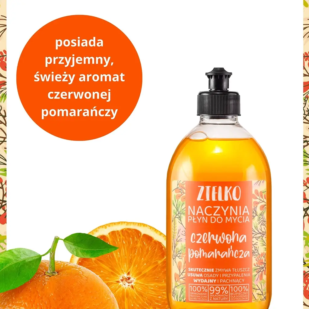 Płyn ZIELKO to nie tylko wydajność i skuteczność. Produkt posiada także przyjemny zapach czerwonej pomarańczy, który wypełnia kuchnię powiewem świeżości. Dzięki temu codzienne mycie naczyń staje się prawdziwą przyjemnością.