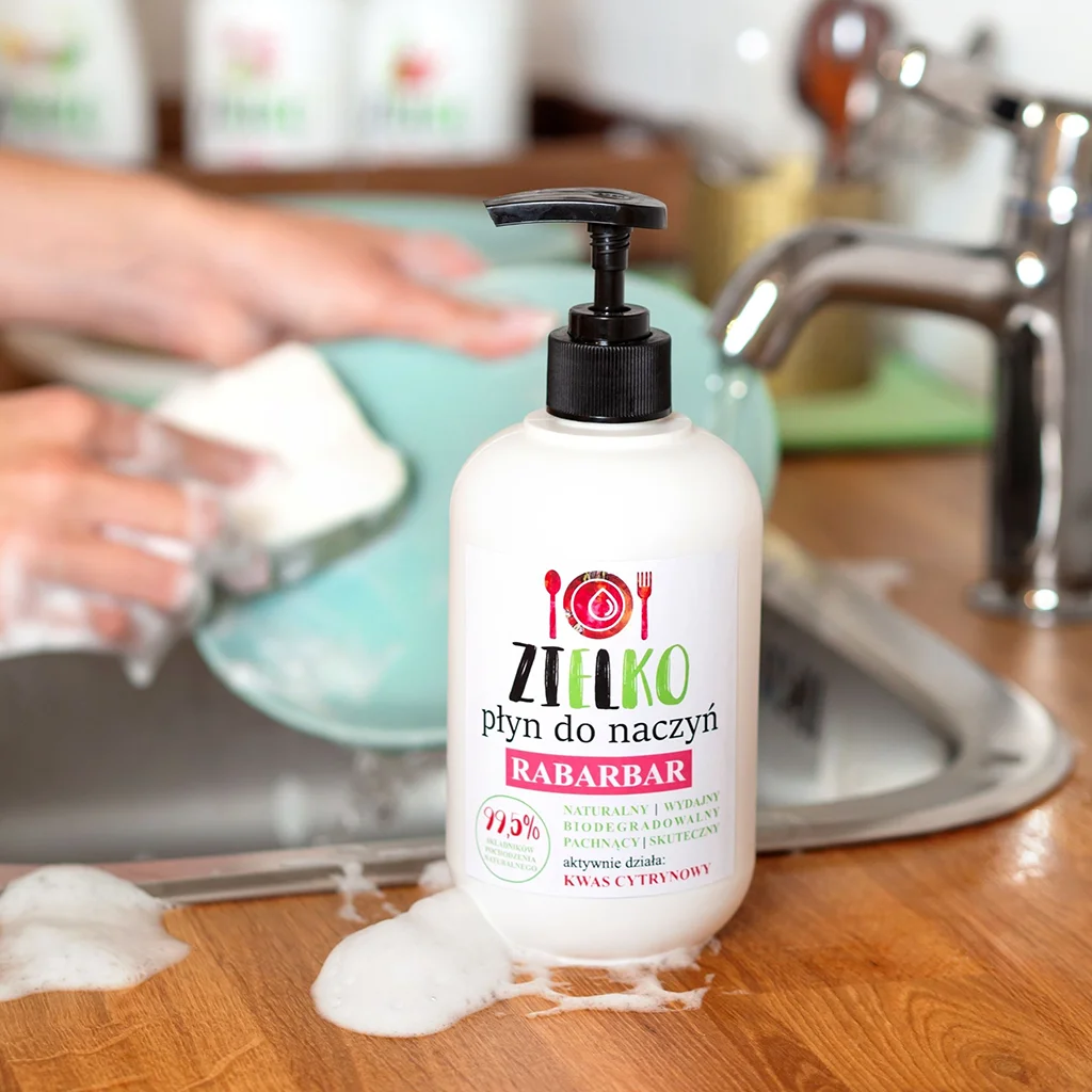 Nasz płyn jest niezwykle wydajny, co pozwala na oszczędne mycie naczyń. Oprócz jego niezwykłej skuteczności, przyciąga również świeżym zapachem rabarbaru, który wypełni przyjemnym aromatem całą kuchnię.