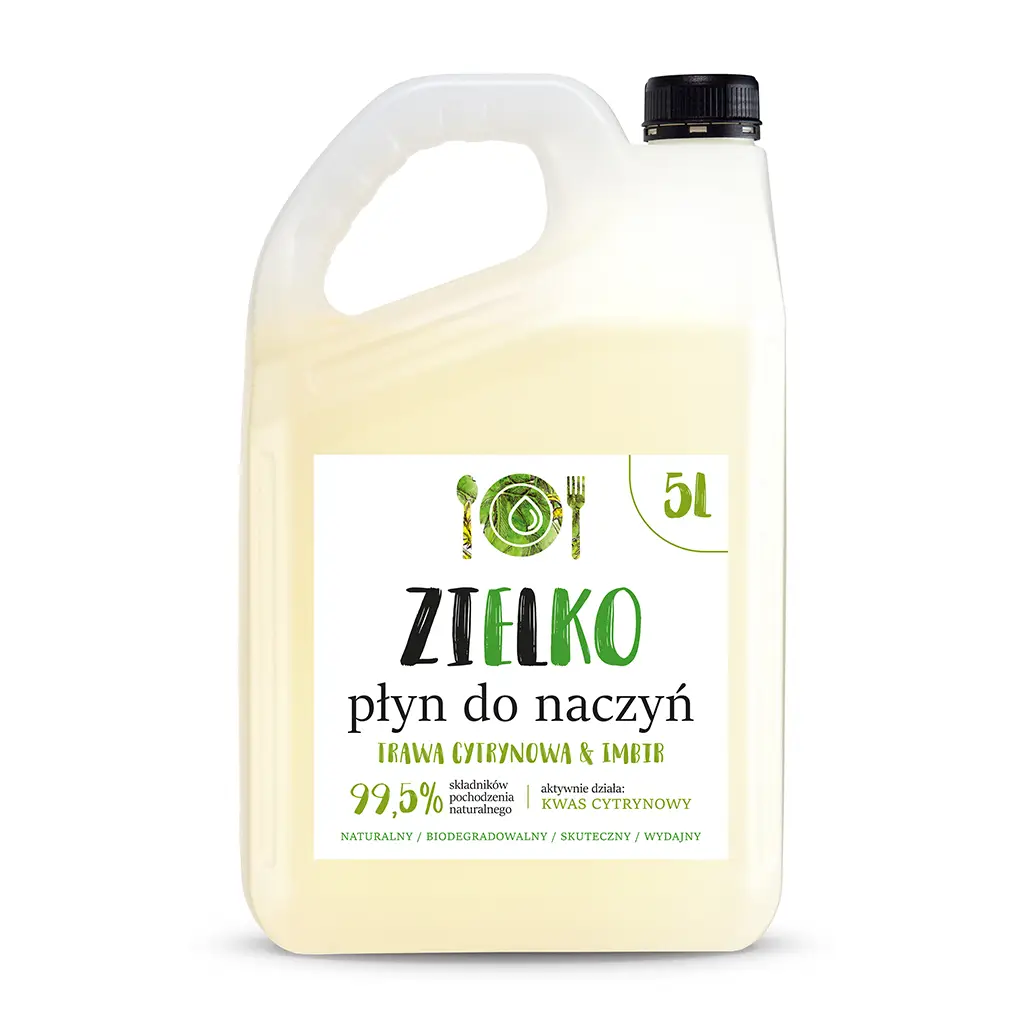 Płyn jest niezwykle wydajny, co pozwoli Ci na ekonomiczne mycie naczyń. Oprócz niesamowitej skuteczności, ZIELKO zachwyca także świeżym zapachem trawy cytrynowej i imbiru, który sprawi, że Twoją kuchnię wypełni niepowtarzalny aromat.