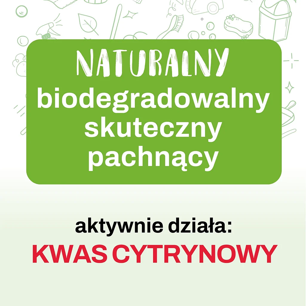 Bazą naszego płynu do naczyń jest znany ze swoich właściwości czyszczących kwas cytrynowy, który skutecznie i bez wysiłku usuwa wszelkie zabrudzenia, pozostawiając Twoje naczynia nieskazitelnie czyste. Płyn posiada wysoką zdolność emulgowania tłuszczów. Zawiera aż 99,5% składników pochodzenia naturalnego.