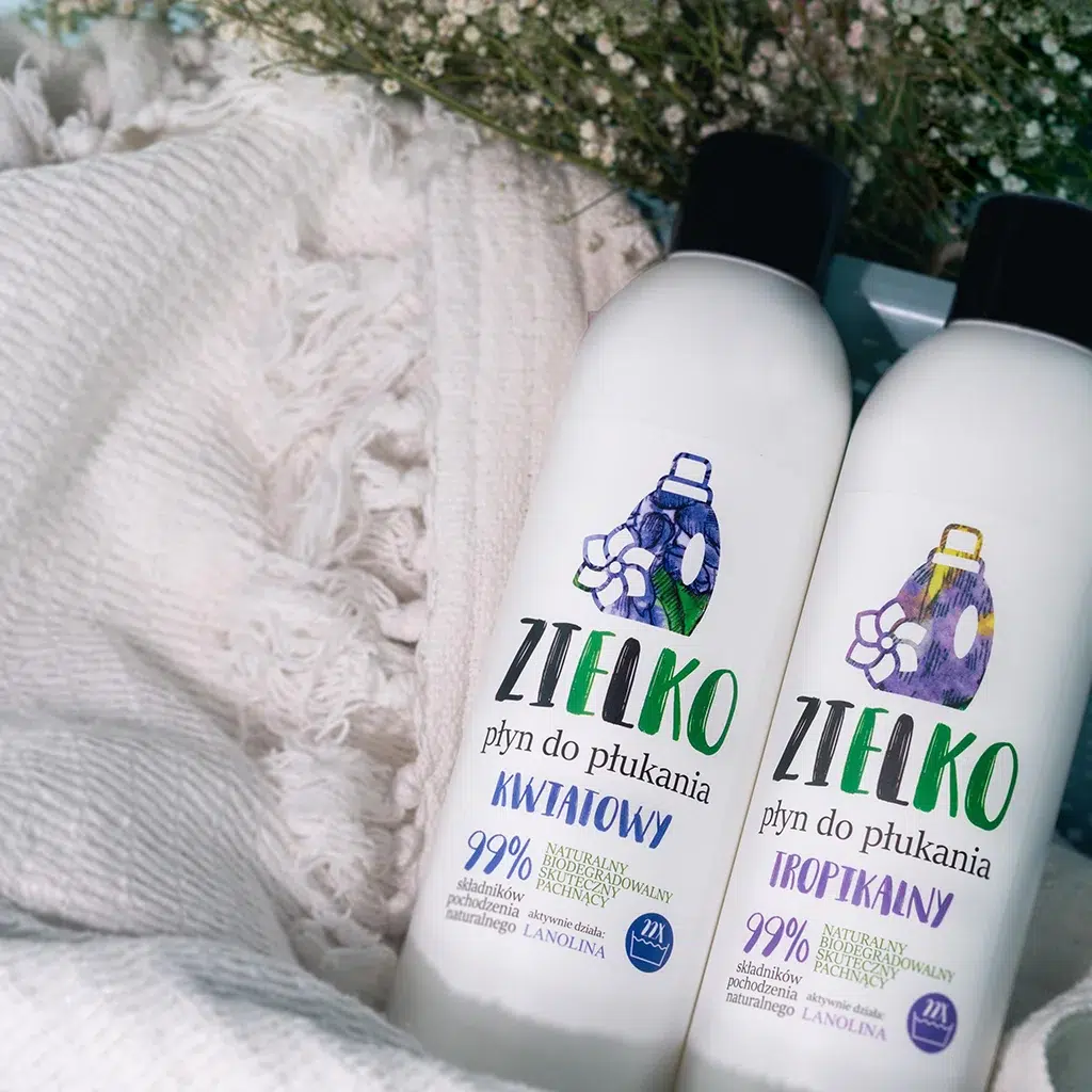 Naturalny płyn do płukania z lanoliną zmiękcza i odświeża pranie, nadając tkaninom kwiatowy zapach. Sprawia, że świeżość trwa dłużej, zapewniając płukanym materiałom piękny zapach utrzymujący się nawet przez kilka dni. Płyn do płukania ZIELKO jest całkowicie bezpieczny i przyjazny nie tylko dla ubrań, ale również dla skóry, nawet tej delikatnej i wrażliwej. Jak wszystkie produkty ZIELKO jest całkowicie biodegradowalny.
