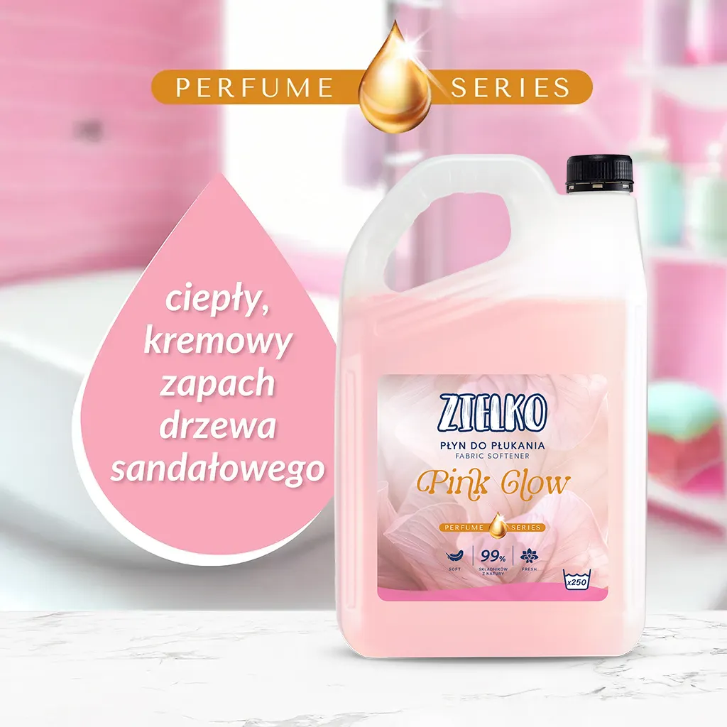 Poczuj luksusową miękkość i otulające ciepło drzewa sandałowego! ZIELKO Płyn do płukania PINK GLOW to wyjątkowa kompozycja o kremowym, eleganckim zapachu, który dodaje tkaninom zmysłowości i subtelnej słodyczy. Jego zaawansowana formuła sprawia, że ubrania stają się jedwabiście gładkie, miękkie i wyjątkowo przyjemne w dotyku.