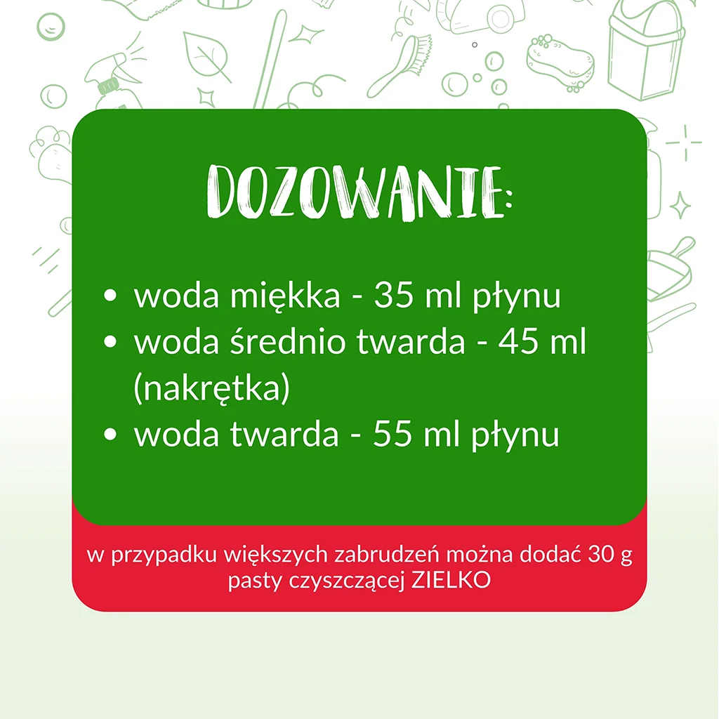 W przypadku większych zabrudzeń można dodać 30 g pasty czyszczącej ZIELKO.