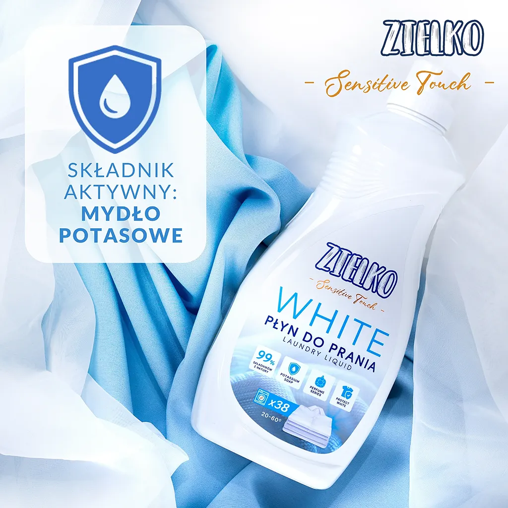 Białe ubrania i pościel, które zachowują swoją nieskazitelną biel na dłużej? To możliwe z naturalnym płynem do prania ZIELKO SENSITIVE TOUCH! Skuteczna formuła, oparta na składnikach naturalnych skutecznie usuwa plamy, jednocześnie dbając o włókna i przywracając tkaninom ich naturalną biel.