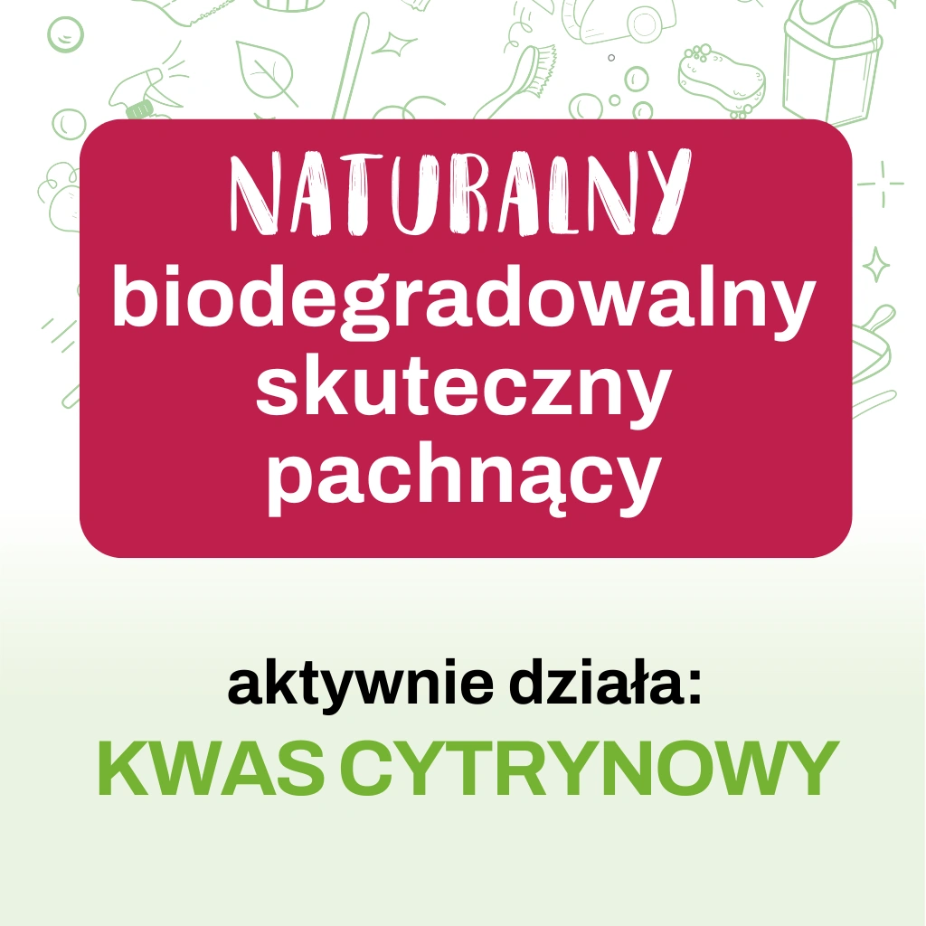 pH: 6.6 Aktywnie działa: kwas cytrynowyZastosowanie: płytki, terakota, kafle, podłogi, blaty, powierzchnie plastikowe, meble, zabawki, sprzęt AGD, panele winylowe, linoleum, PCV, framugi okien.