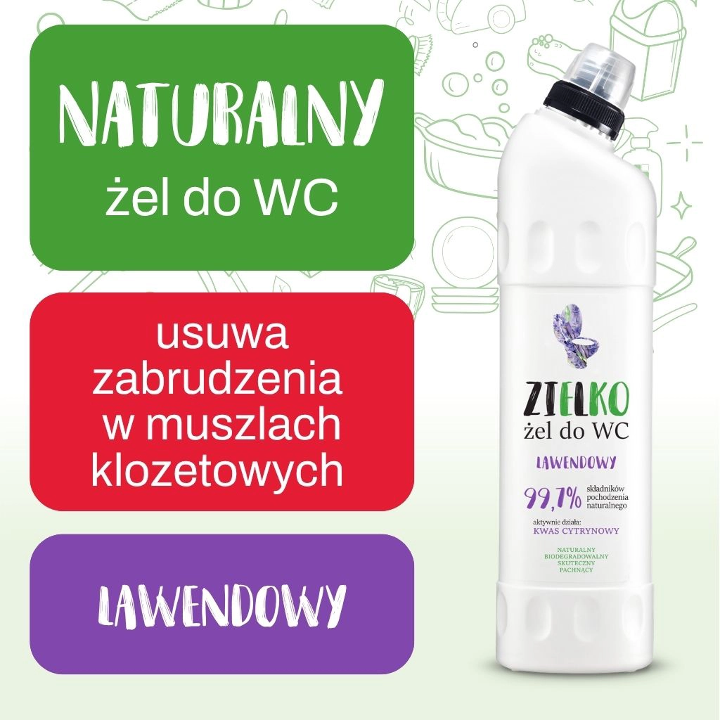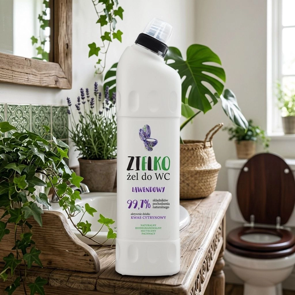 ZIELKO Żel do WC lawendowy to skuteczny środek czyszczący, który łączy wysoką efektywność działania z delikatnym, relaksującym zapachem lawendy. Jego formuła pomaga usuwać kamień, osady oraz codzienne zabrudzenia, przywracając toalecie czystość i świeżość. Dzięki gęstej konsystencji żel łatwo się aplikuje i dłużej utrzymuje na czyszczonej powierzchni, co pozwala składnikom aktywnym działać skuteczniej. Produkt sprawdza się zarówno przy codziennym sprzątaniu, jak i przy usuwaniu bardziej uporczywych zabrudzeń.